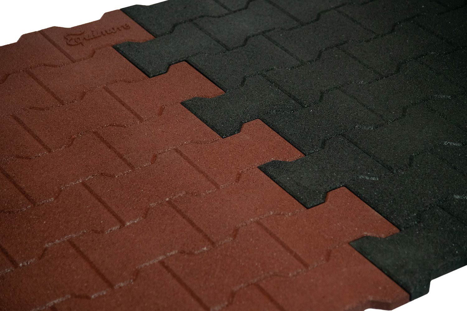 Das Equimore Logo am Eckstück macht die Gummimatte unverwechselbar.